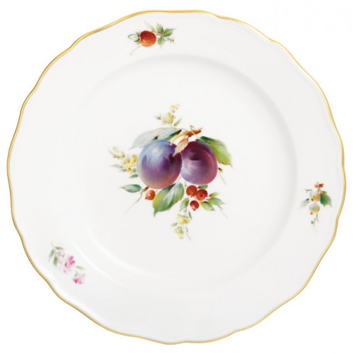 Teller, Form "Neuer Ausschnitt", Vintage Fruchtmalerei, Motiv - Pflaume, Goldrand, ø 20 cm