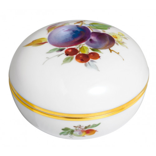 Dose, Form "Neuer Ausschnitt", Vintage Fruchtmalerei, Motiv - Pflaume, Goldrand, ø 7,5 cm