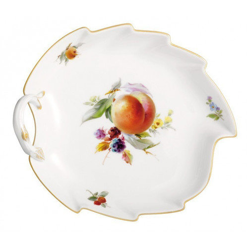 Konfektblatt, Vintage Fruchtmalerei, Motiv - Pfirsich, Goldrand, L 19 cm