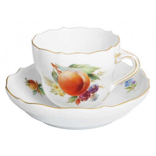 Espressotasse, Form "Neuer Ausschnitt", Vintage Fruchtmalerei, Motiv - Pfirsich, Goldrand, V 0,1 l