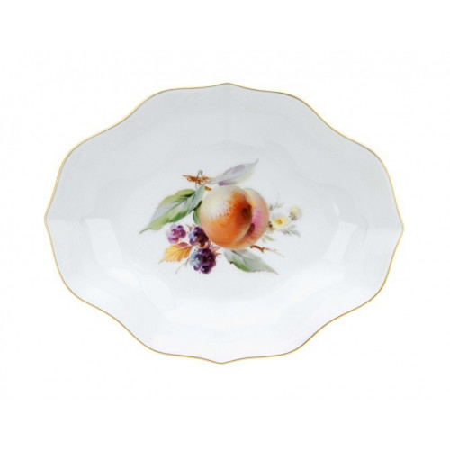 Schälchen, Form "Neuer Ausschnitt", Vintage Fruchtmalerei, Motiv - Pfirsich, Goldrand, L 16 cm