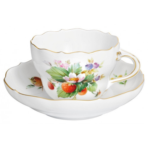 Kaffeetasse m.U., Form "Neuer Ausschnitt", Vintage Fruchtmalerei, Motiv - Erdbeere, Goldrand, V 0,20 l