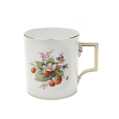 Kaffeebecher, Form "Berlin", Vintage Fruchtmalerei, Motiv - Erdbeere, Goldrand, V 0,25 l