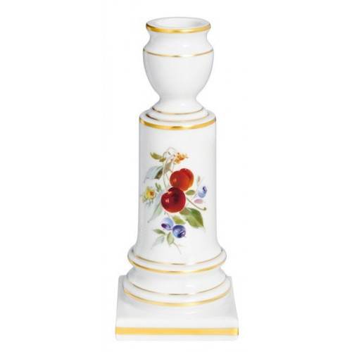 Leuchter, Form "Neuer Ausschnitt", Vintage Fruchtmalerei, Motiv - Kirsche, Goldrand, H 14 cm