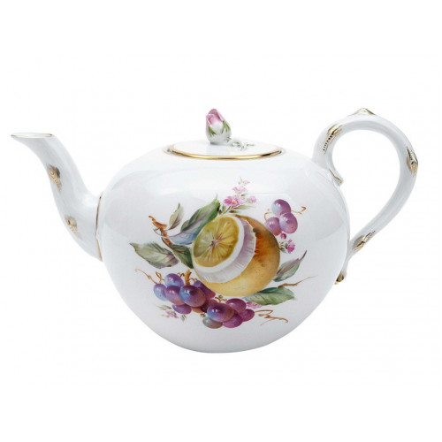 Teekanne, Form "Neuer Ausschnitt", Vintage Fruchtmalerei, Motiv - Zitrone, Goldrand, V 1,00 l