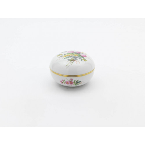 Dose, Blume naturalistisch, bunt, ohne Schmetterling, Goldrand, ø 13 cm