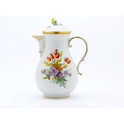 Kaffeekanne, Form "Neuer Ausschnitt", Blume naturalistisch, bunt, mit Schmetterling, Goldrand, V 1,20 l