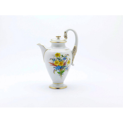 Kaffeekanne, Blume naturalistisch, bunt, mit Schmetterling, Goldrand, 0,6 l