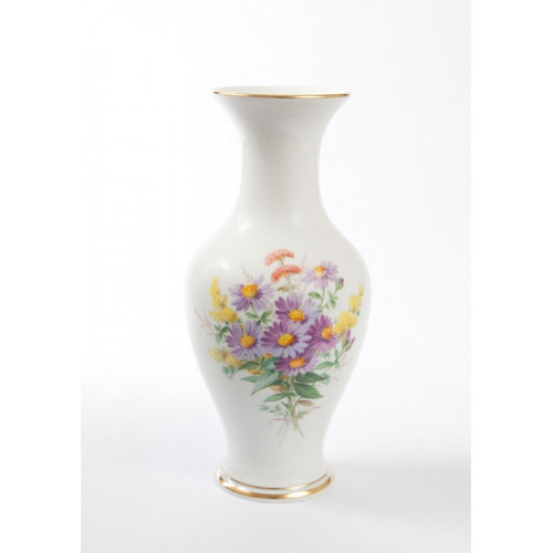Vase, Form "Neuer Ausschnitt", Blume naturalistisch, bunt, mit Schmetterling, Goldrand, H 24 cm