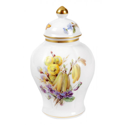 Vase, Blume naturalistisch, bunt, mit Schmetterling, Goldrand, H 14,5 cm