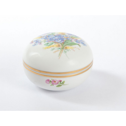 Dose, Blume naturalistisch, bunt, mit Schmetterling, Goldrand, ø 7 cm