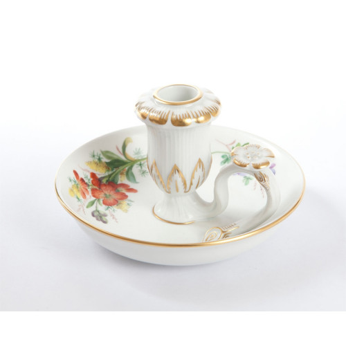 Leuchter, Blume naturalistisch, bunt, mit Schmetterling, Goldrand, H 7 cm