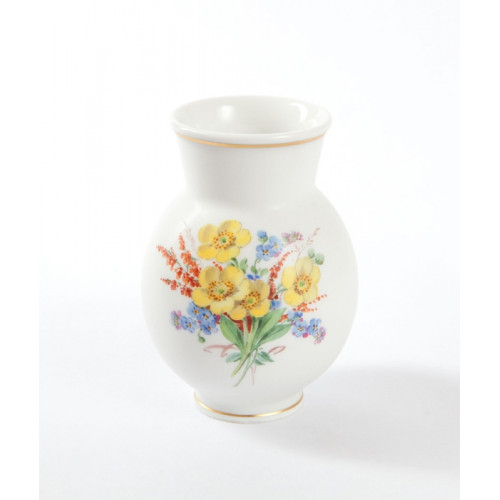 Vase, Blume naturalistisch, mit Schmetterling, Goldfaden bzw. Goldreifen, H 8,5 cm