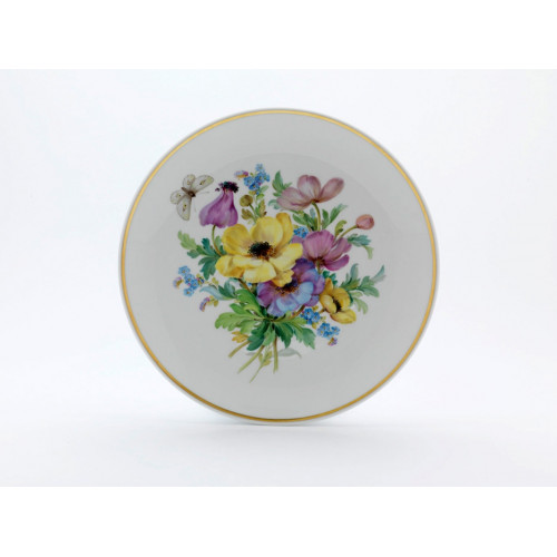 Wandschale, Blume naturalistisch, mit Schmetterling, Goldfaden bzw. Goldreifen,