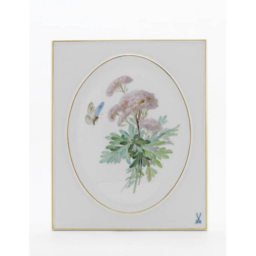 Wandplatte, Blumenmalerei, natural., leicht, bunt, mit Schmetterling, Goldrand, 20,5 x 25 cm