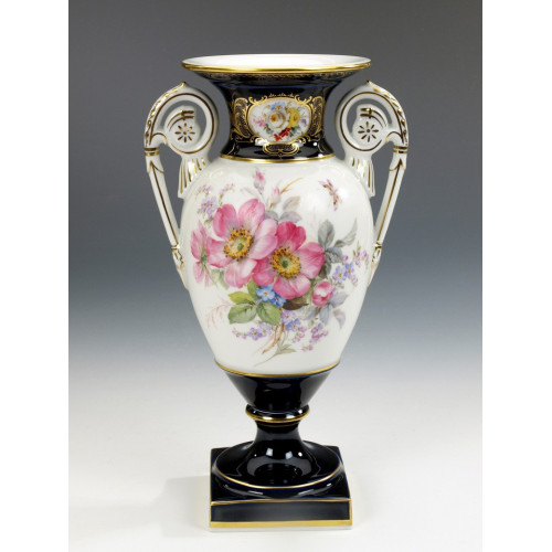 Vase, FF-Blumenmal.,Amsterdamer Art,königsbl.Bord glas.,Goldwellenk.Goldrand, H 22 cm