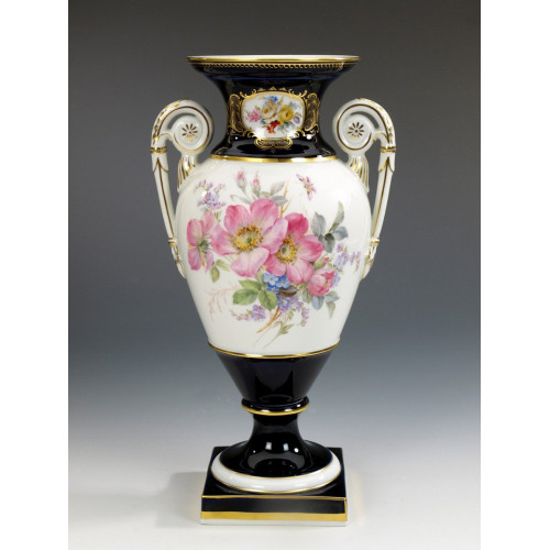 Vase, FF-Blumenmal.,Amsterdamer Art,königsbl.Bord glas.,Goldwellenk.Goldrand, H 29 cm