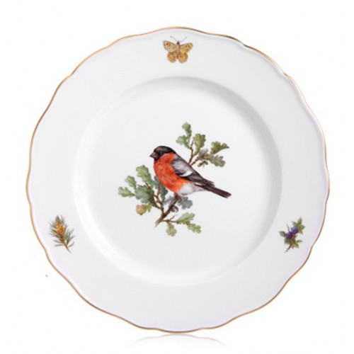 Speiseteller, Vogel- und Insektenmalerei, leicht, bunt, Goldrand, ø 28 cm