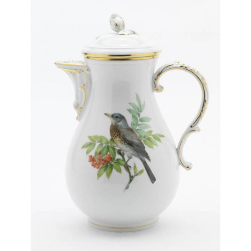 Kaffeekanne, Vogel- und Insektenmalerei, leicht, bunt, Goldrand, V 1,20 l
