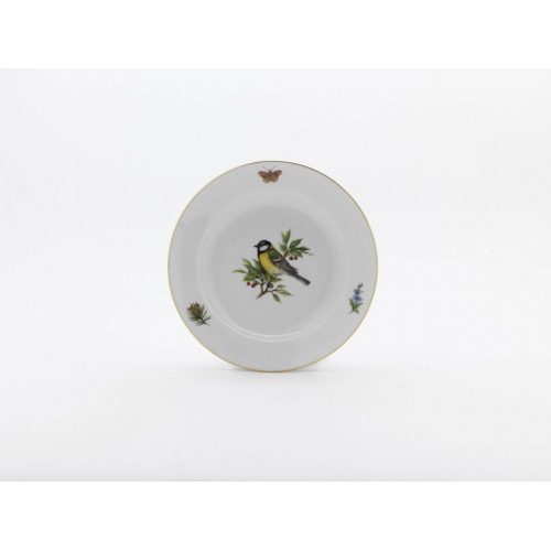 Teller, Vogel- und Insektenmalerei, leicht, bunt, Goldrand, ø 19 cm