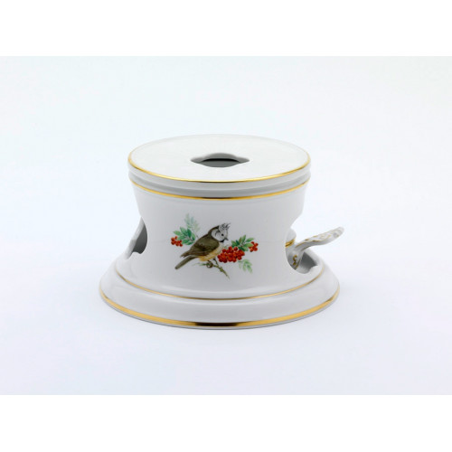 Stövchen, Vogel- und Insektenmalerei, leicht, bunt, Goldrand, ø 16 cm