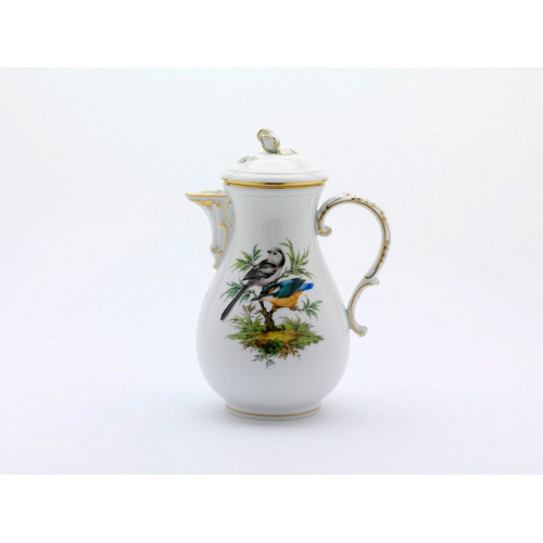 Kaffeekanne, Vogelmalerei auf Stamm u.Terrasse, alte Manier, 2 Vögel, Goldrand, V 1,20 l