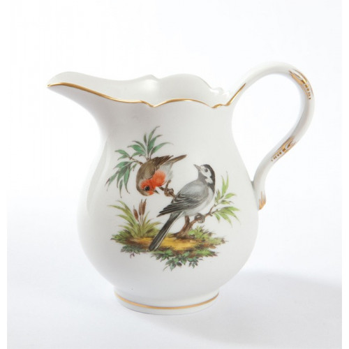 Milchkännchen, Vogelmalerei auf Stamm u.Terrasse, alte Manier, 2 Vögel, Goldrand, V 0,15 l
