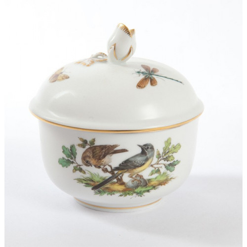 Zuckerdose, Vogelmalerei auf Stamm u.Terrasse, alte Manier, 2 Vögel, Goldrand, Ø 9 cm