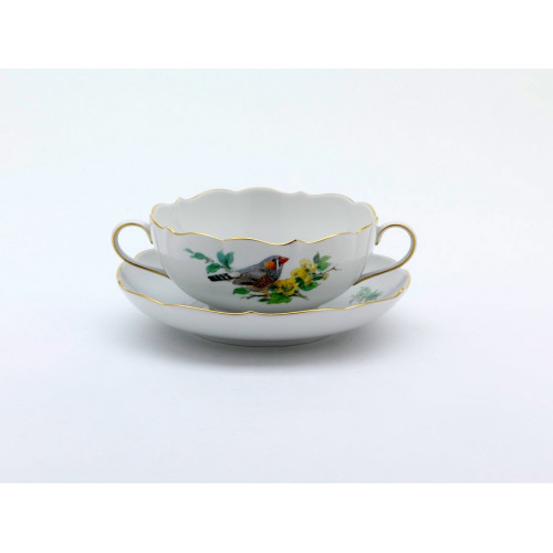 Suppentasse m.U., Vogel- und Insektenmalerei, exotisch, bunt, Goldrand, V 0,35 l