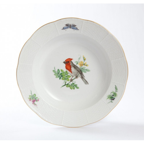 Suppenteller, Vogel- und Insektenmalerei, exotisch, bunt, Goldrand, 24 cm