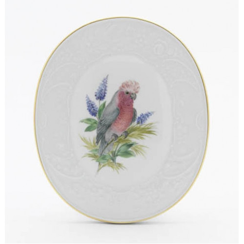 Wandplatte, Vogel- und Insektenmalerei, exotisch, bunt, Goldrand,