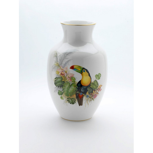 Vase, Pfefferfresser mit exotischen Pflanzen, bunt, Goldrand, H 42 cm
