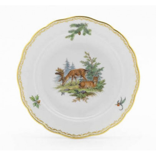 Teller, Wildmalerei nach Ridinger, bunt, Goldkante, Goldrand, ø 14 cm