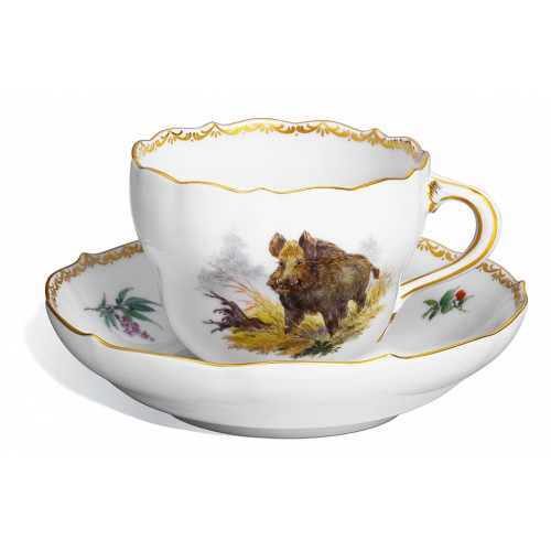Espressotasse m.U., Form "Neuer Ausschnitt", Wildmalerei nach Ridinger, bunt, Goldkante, Goldrand, V 0,1 l