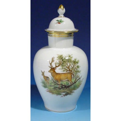 Vase, Wildmalerei nach Ridinger, bunt, Goldkante, Goldrand, H 23 cm