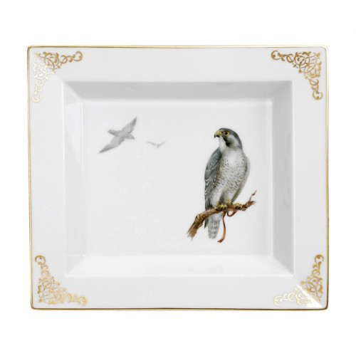 Vide-poche groß, Naturalistische Tiermalerei, bunt, Motiv: Falke, Golddekoration, 21 x 18,5 cm