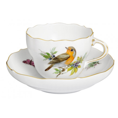 Kaffeetasse m.U., Form "Neuer Ausschnitt", Vintage Vogelmalerei, Motiv - Rotkehlchen, Goldrand, V 0,20 l
