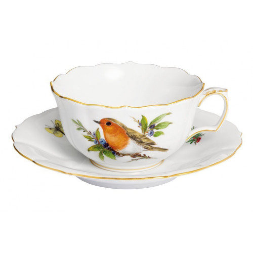Teetasse m.U., Form "Neuer Ausschnitt", Vintage Vogelmalerei, Motiv - Rotkehlchen, Goldrand, V 0,20 l