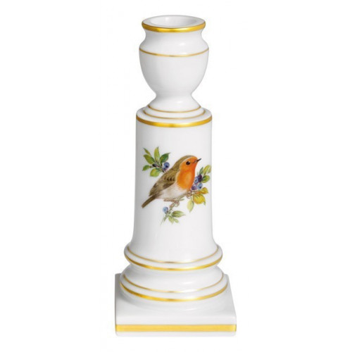 Leuchter, Form "Neuer Ausschnitt", Vintage Vogelmalerei, Motiv - Rotkehlchen, Goldrand, H 14 cm