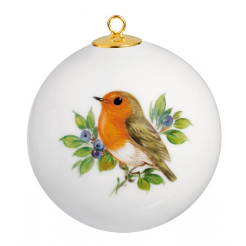 Kugel, Vintage Vogelmalerei, Motiv - Rotkehlchen, Goldrand, ø 5 cm