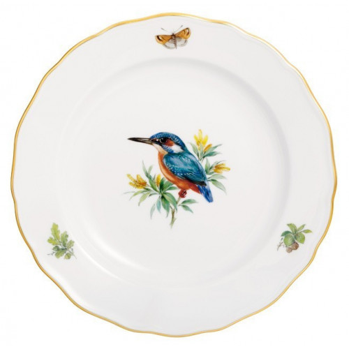 Teller, Form "Neuer Ausschnitt", Vintage Vogelmalerei, Motiv - Eisvogel, Goldrand, ø 20 cm