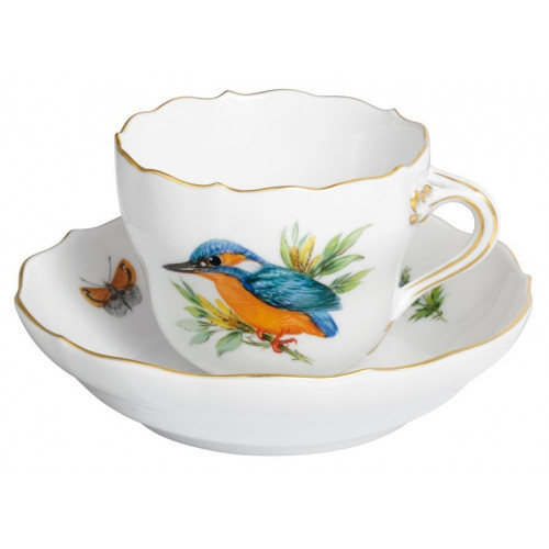 Espressotasse, Form "Neuer Ausschnitt", Vintage Vogelmalerei, Motiv - Eisvogel, Goldrand, V 0,1 l