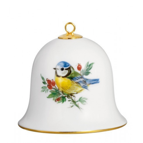 Miniatur-Glocke, Vintage Vogelmalerei, Motiv - Blaumeise, Goldrand, H 5 cm