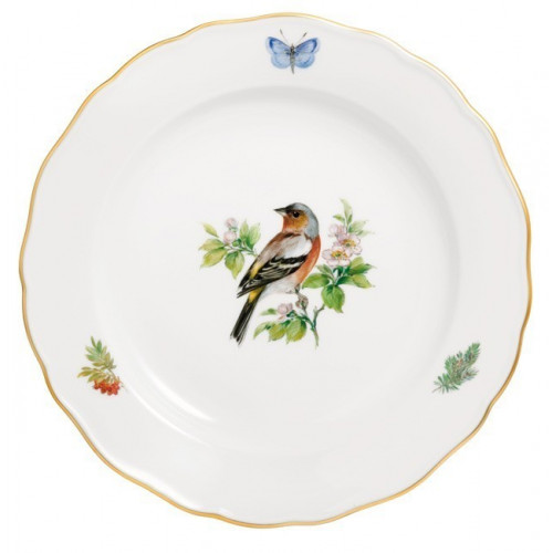 Teller, Form "Neuer Ausschnitt", Vintage Vogelmalerei, Motiv - Buchfink, Goldrand, ø 20 cm