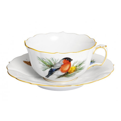 Teetasse m.U., Form "Neuer Ausschnitt", Vintage Vogelmalerei, Motiv - Gimpel, Goldrand, V 0,20 l