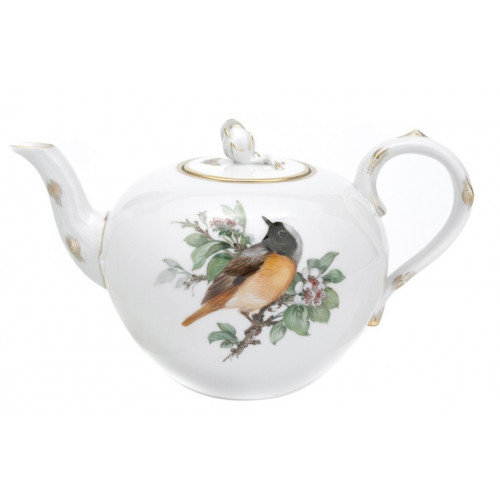 Teekanne, Form "Neuer Ausschnitt", Vintage Vogelmalerei, Motiv - Gartenrotschwänzchen, Goldrand, V 1,00 l