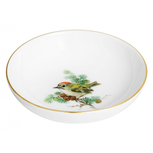 Schälchen, Form "Neuer Ausschnitt", Vintage Vogelmalerei, Motiv - Goldhähnchen, Goldrand, ø 8 cm