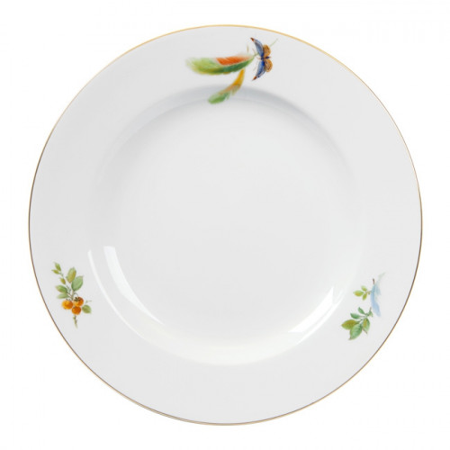 Teller, Form "Glatte Form", Vintage Exotische Vogelmalerei, Motiv - Zweige und Insekten, Goldrand, ø 22 cm