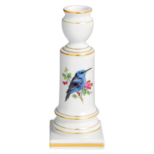 Leuchter, Form "Neuer Ausschnitt", Vintage Exotische Vogelmalerei, Motiv - Türkisnaschvogel, Goldrand, H 14 cm