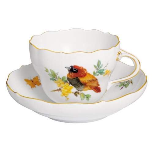 Kaffeetasse m.U., Form "Neuer Ausschnitt", Vintage Exotische Vogelmalerei, Motiv - Feuerweber, Goldrand, V 0,20 l